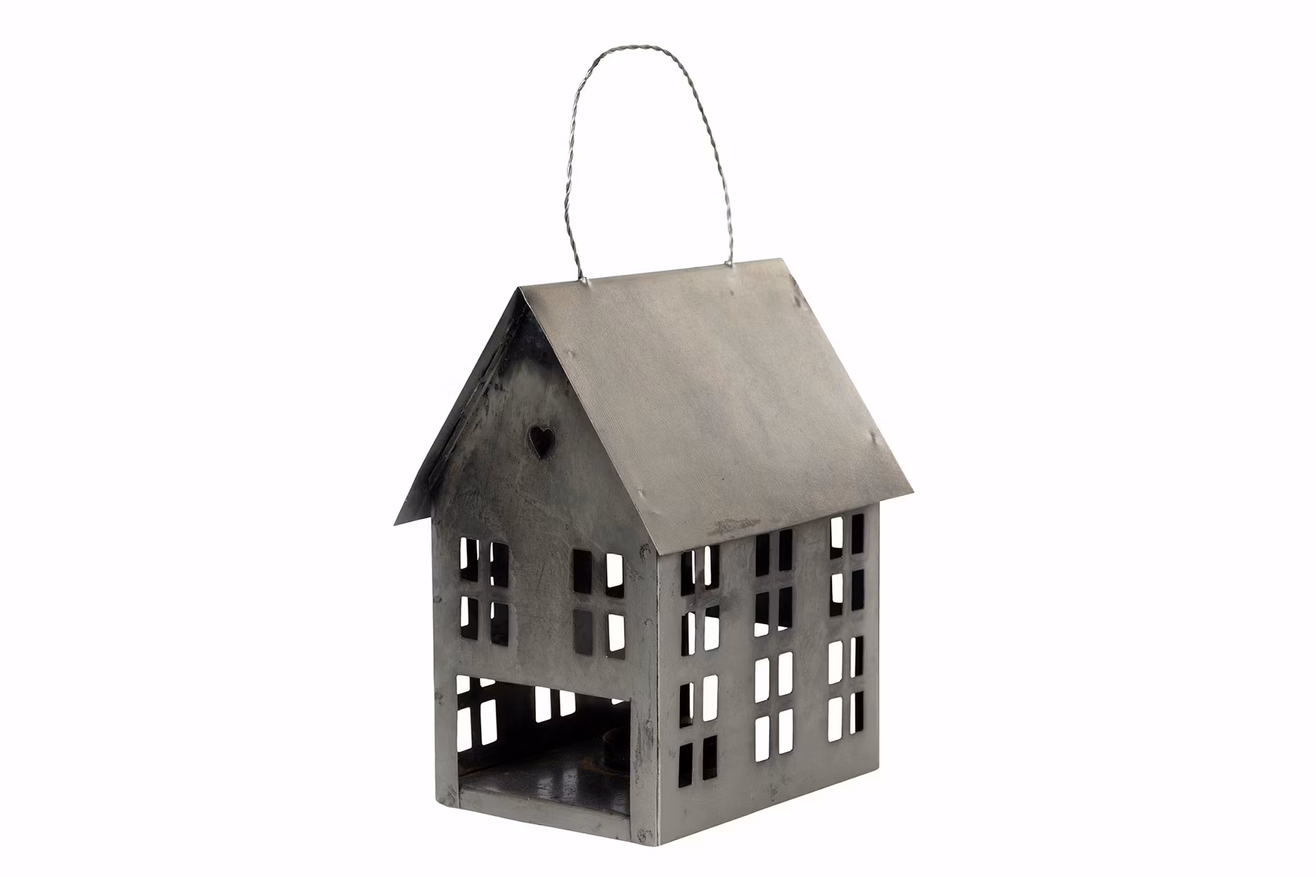 Att dekorera med ljushus är stort i höstens inredning. Vi kommer få in olika modeller och färger. Denna är i grå metall med hängbygel och har måtten 9 cm x 12 cm x 17 cm.