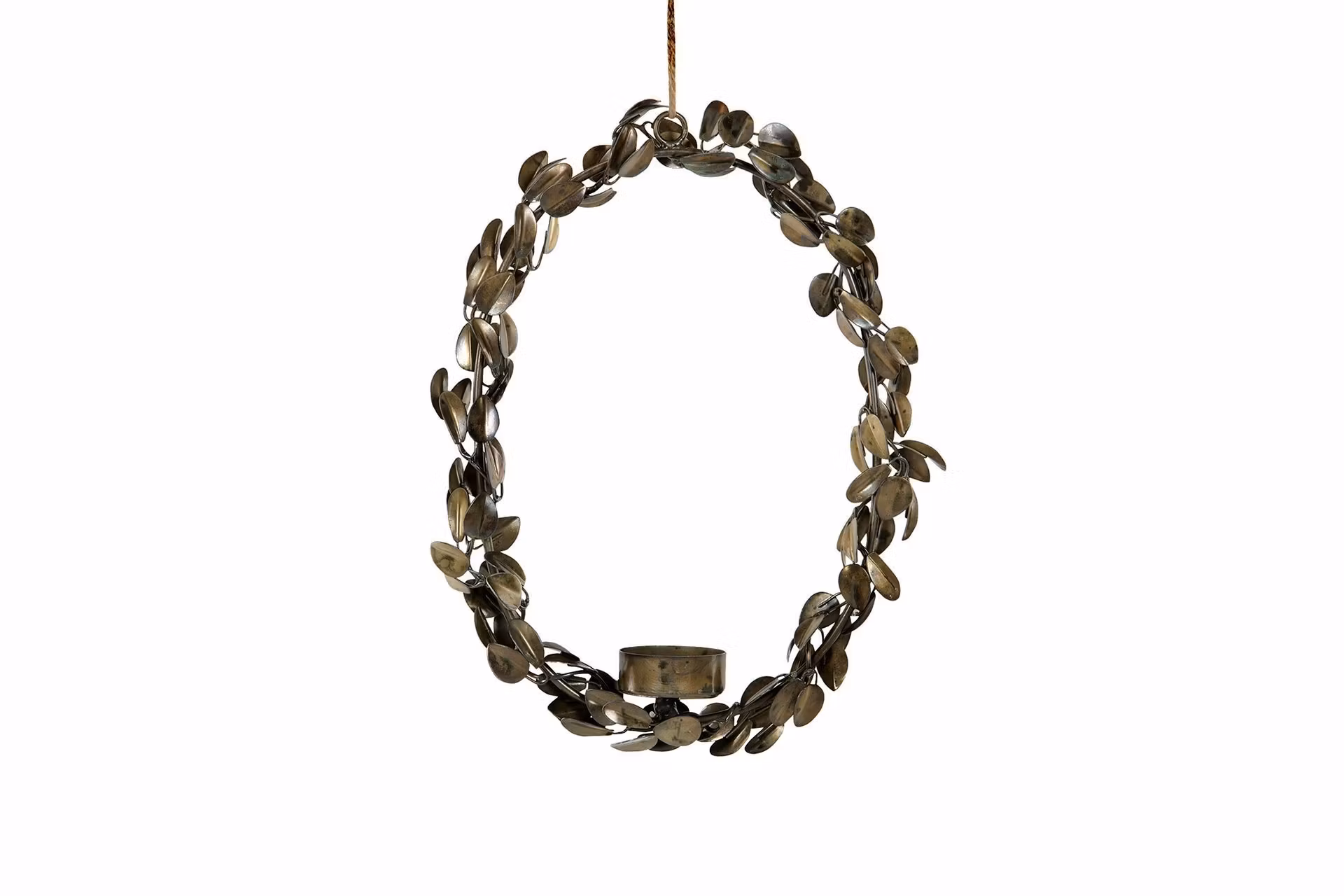 Ljuskrans för värmeljus 219 kr I lager. Lägg i korgen Dela Lagersaldo: 6 Produktinformation Vacker bladkrans i metall för värmeljus. B 20 cm, h 28 cm, djup 4,5 cm.