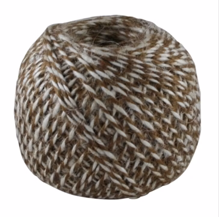 Jutesnöre Brun/Vit Melerat 59 kr I lager. Lägg i korgen Dela Lagersaldo: 13 Produktinformation Tvinnat jutesnöre i brunt och vitt, 125 m.