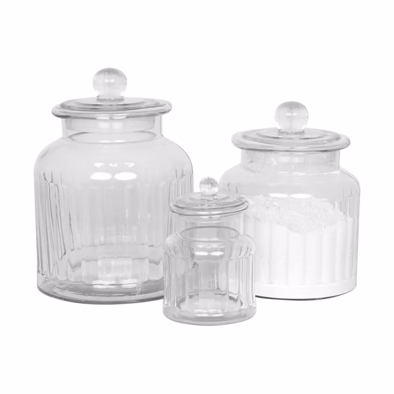 Glasburk Gustav Räfflad Stor 229 kr I lager. Lägg i korgen Dela Lagersaldo: 2 Produktinformation Glasburk i räfflat glas med lock. Perfekt förvaring i t.ex. köket eller badrummet. Ej tätslutande lock. Ø 17 x 23 cm