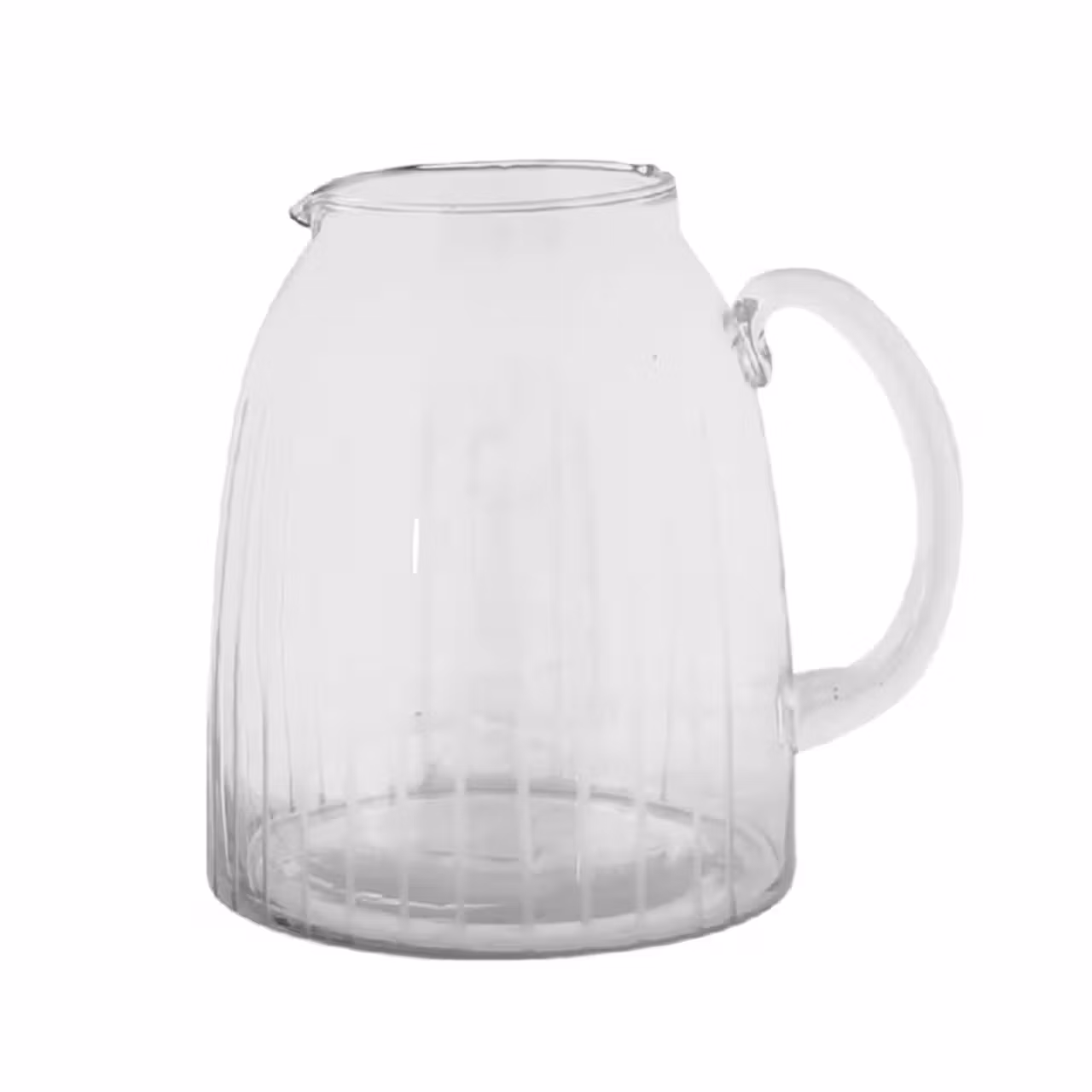 Kanna med handtag i glas med etsade ränder som dekor. Matcha gärna med dricksglasen med samma etsade rand. Kannan är tillverkad av 50-60% återvunnet glas.