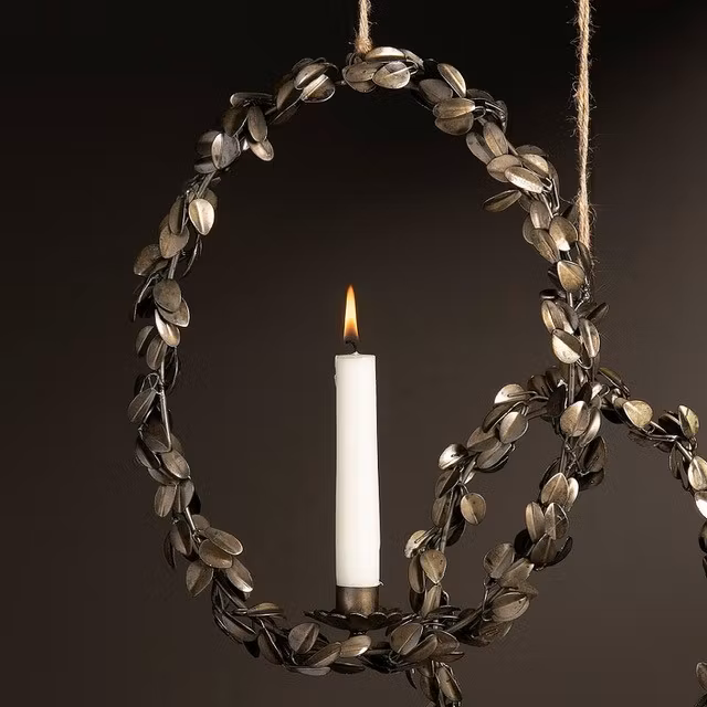 Ljuskrans 289 kr Produkten är tyvärr slut i lager. :( Dela Produktinformation Vacker bladkrans i metall för kronljus. B 26 cm, h 35 cm, djup 6,5 cm.