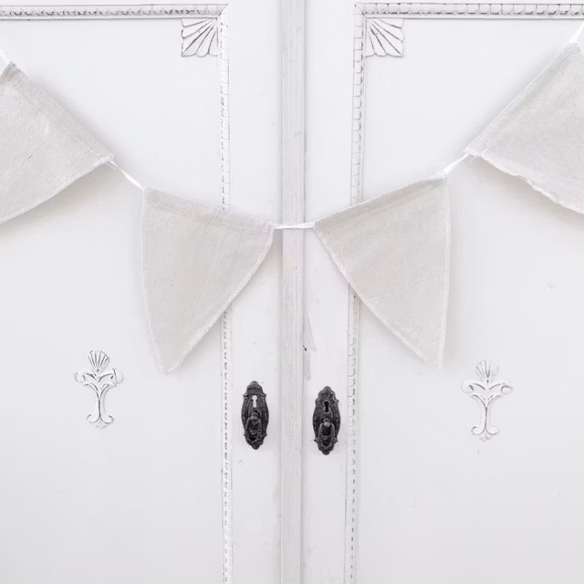 Vimpelgirlang 129 kr I lager. Lägg i korgen Dela Lagersaldo: 3 Produktinformation Girlang på 5 meter med 12 st vimplar, 12 x 22 cm, i naturlinnefärgad bomull. Girlangbandet är vitt.