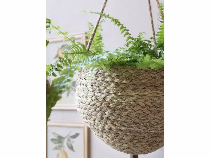 Flätad korg för upphängning 159 kr I lager. Lägg i korgen Dela Lagersaldo: 3 Produktinformation Flätad korg i naturmaterial för upphängning. H19/D27
