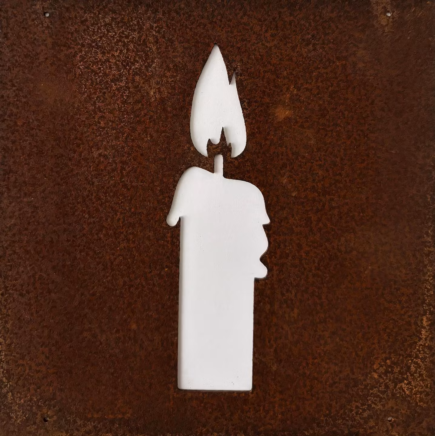 Charmig rostig skylt med genombrutet motiv av ett ljus. Passar till armeringsnät eller som ensamskylt, ståltråd medföljer. 14 cm x 14 cm. Finns även som Ängel, träd, groda, murgröna, älva och fågel mm.